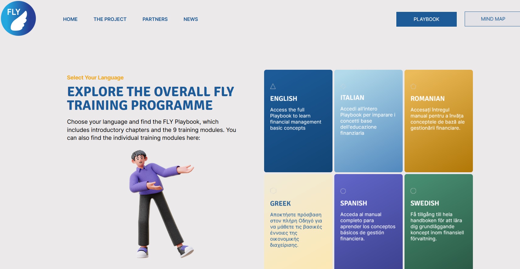 Για να γεφυρώσει το χάσμα της χρηματοοικονομικής εκπαίδευσης των νέων και να τους ενδυναμώσει μέσω ψηφιακών πόρων, το έργο FLY έχει αναπτύξει ένα εκπαιδευτικό πρόγραμμα που απευθύνεται σε νέους, καθώς και σε δασκάλους και εκπαιδευτικούς.